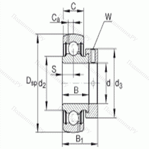 сферическое наружное кольцо, фиксация эксцентриковым закрепительным кольцом, двусторонние P-уплотнения, размер отверстия в дюймах
