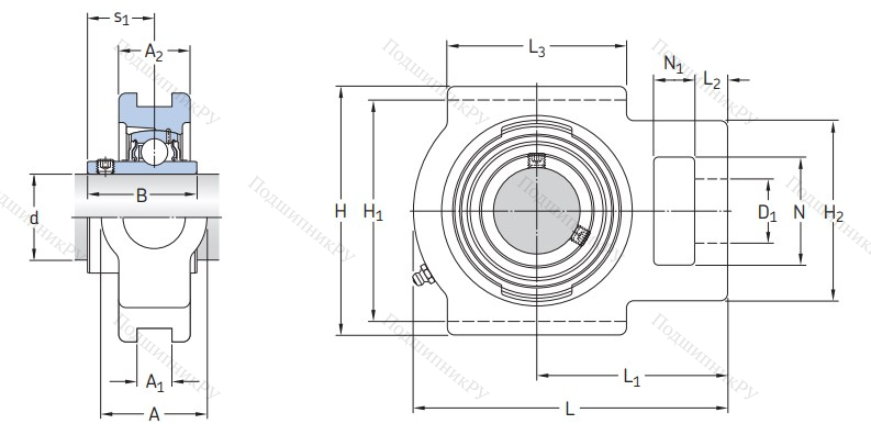 Модель обладает литым корпусом типа Т или TJ, удерживающим однорядный сферический шарикоподшипник типа Y. Внешняя оболочка выполнена из высокопрочного чугуна, стойкого к коррозиям и механическому воздействию.