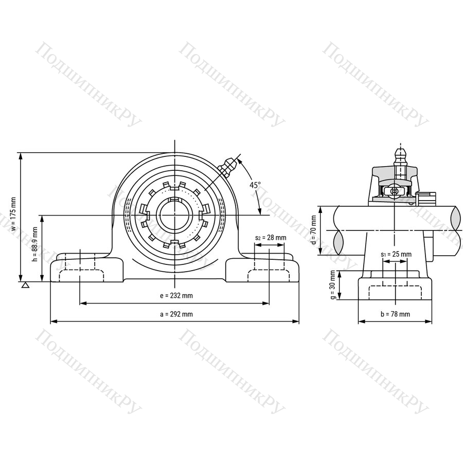 Подшипниковый узел UKP 216 - Вал: 70 мм