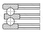 Подшипник упорный шариковый двойной 38217 в конструкцию которого входит свободная внешняя и тугая внутренняя шины (последняя жестко фиксируется на валу), сепаратор и заключенные в нем тела качения. При наличии двух рядов шарикоподшипников изделие комплектуется парой сепараторов. Может иметь подкладную обойму.