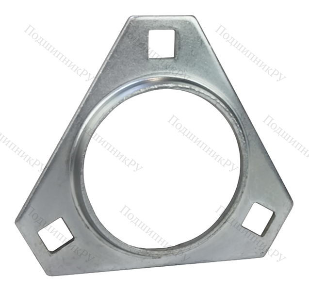 Фланцевая подшипниковая конструкция треугольной формы с тремя квадратными отверстиями, расположенными по углам и предназначенными для установки системы на вертикальной поверхности опоры. Состоит из двух одинаковых частей, созданных методом глубокой вытяжки во время штамповки. Установка на валу происходит посредству эксцентрикового кольца либо стопорных винтов. В зависимости от производителя, изделие может иметь метрические или дюймовые размерные параметры.